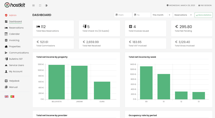 Hostkit is a cloud-based vacation rental solution that helps hospitality businesses streamline accommodation management tasks on a unified interface. The platform enables users to automate guest invoicing, manage submissions to tax authorities, collect and submit guest data to SEF (SIBA), and process municipal tourist taxes. Additionally, Hostkit also facilitates third-party integration with various channel managers. Key features include compliance management, online check-in, staff management, and communication tools.