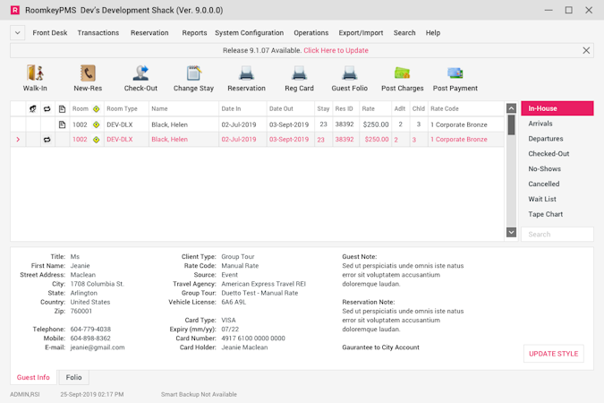 RoomKeyPMS’s user interface