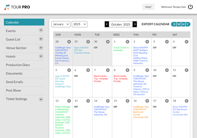 Developed by YourTempo, Touring Pro is a tour management software system designed to coordinate and organize all aspects of artist touring operations for music industry professionals. The platform serves as a centralized hub for managing shows, rehearsals, travel logistics and crew communications throughout touring cycles. The software caters to artist management teams, tour managers, booking agencies and entertainment professionals requiring sophisticated tools to synchronize complex touring schedules and maintain real time communication across multiple locations.