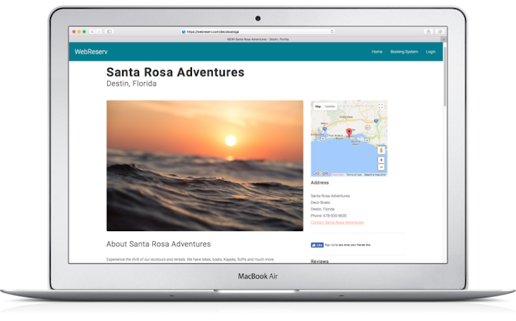 WebReserv is an online booking and reservations management platform for rental businesses. The cloud-based platform caters to tour operators, accommodation owners, and other rental companies, with tools for engaging customers, tracking conversions, managing bookings, processing payments, and more. Users are able to create custom online listings for their services or products and list them on their own business website or the WebReserv booking site.