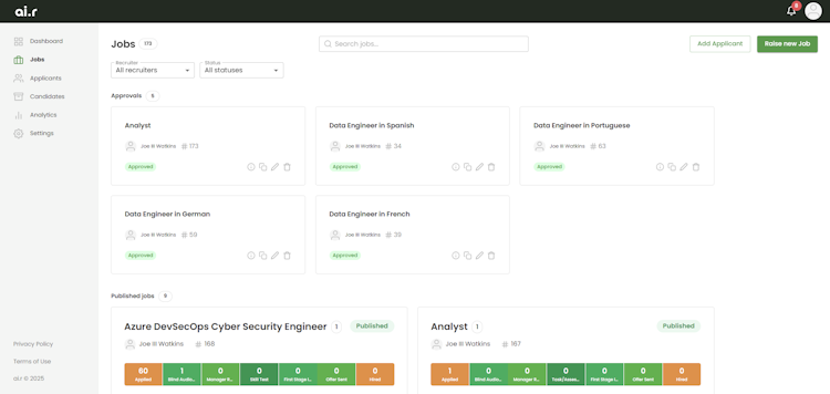 ai.r is an applicant tracking system (ATS) designed to revolutionize the hiring process for growing businesses with small or no dedicated talent acquisition teams. Developed by a team of senior data scientists and developers, ai.r offers a solution to streamline the entire recruitment lifecycle.