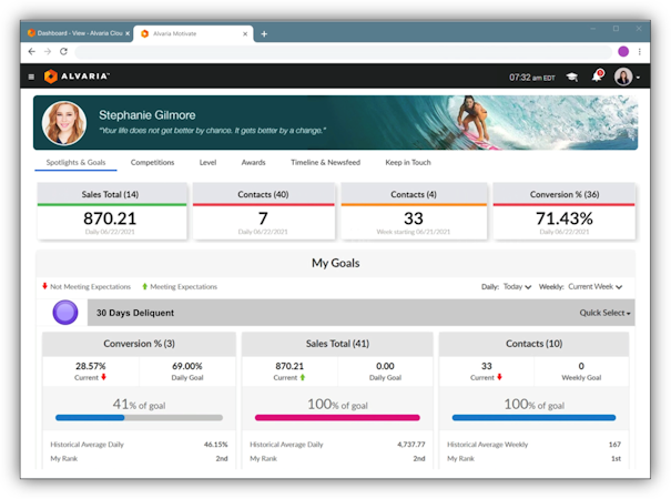 Alvaria Motivate is an Employee Experience (EX) software designed specifically to drive organizational performance and Customer Experience (CX) through improved employee engagement. Using game mechanics to motivate and engage employees both intrinsically and extrinsically, Alvaria Motivate seamlessly aligns employee behaviors to company goals - resulting in improved employee retention, customer satisfaction, and profitability.