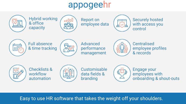 Available in 2 packages - Appogee HR Essentials - Core HR and Absence Management. Appogee HR Success - Core HR and Absence + Enhanced performance and goal tracking using OKRs