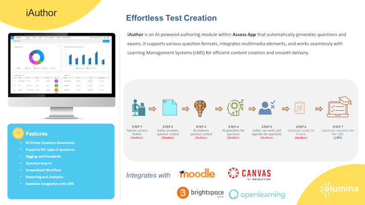 Assess App is an AI-based digital assessment platform designed for educational institutions seeking to modernize the evaluation processes. The platform consists of various integrated modules that work together to streamline the entire assessment lifecycle. The iAuthor module enables educators to create curriculum-aligned tests with diverse question types including multiple-choice, short answer, essay, and interactive multimedia tasks. The content can be continuously updated to reflect current educational standards while facilitating collaborative test creation among educators through a shared repository of AI-generated questions.