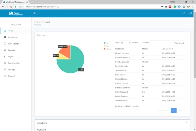 Aussie Time Sheets Workforce TNA’s user interface