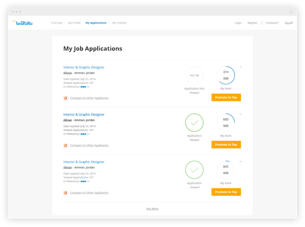 Bayt.com is an online job posting platform that enables employers to hire top talent in the Middle East region. The application allows organizations to advertise vacancies, connect with relevant candidates within the largest community of job seekers in the Middle East, and streamline the hiring operations.