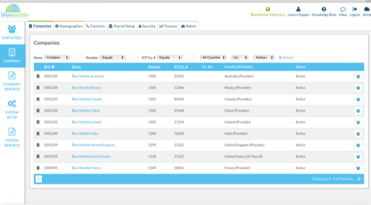 Blue Marble Payroll is a cloud-based system for the management of payrolls across multiple countries, replacing ad-hoc solutions like spreadsheets and faxing. It is aimed at international companies or those intending global expansion. The software negotiates a number of multinational differences, including country-specific HR rules, specific languages and currencies, and national regulatory compliance. It allows the administration of payrolls from a centralized platform with no need for dedicated overseas staff or payroll partners.
