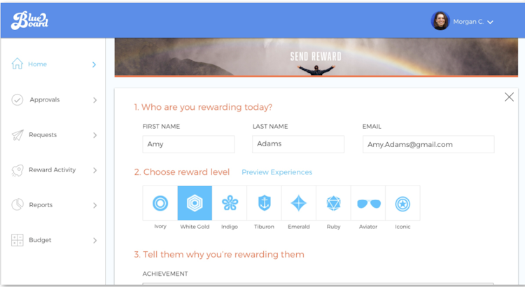Blueboard is an employee rewards and recognition system that offers enterprises a user-friendly platform from which to manage and distribute employee rewards. Incorporating request and customized approval workflows as well as reports and budgeting capabilities, Blueboard aims to provide users with a simple and scalable employee rewards management solution.