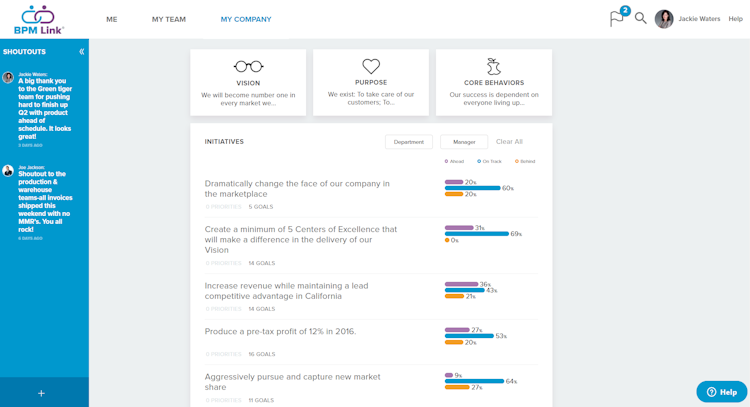 BPM Link uniquely connects each member of your team to the strategic direction of your company. Whether your team is remote, in-person or hybrid, this platform supports clear expectations, facilitates strategic conversations, and allows every voice to be heard. Reduce burnout and maximize output while bringing the team together with BPM Link.