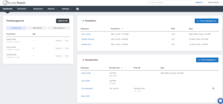 Buddy Punch’s user interface