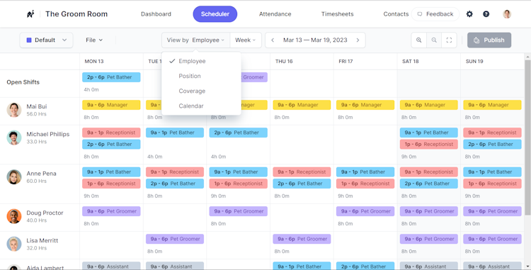 Involve your team in the scheduling process and reduce the administrative burden on your shoulders with flexible scheduling options on Camelo, including shift swaps, time-off requests, open shifts, shift approvals, etc.