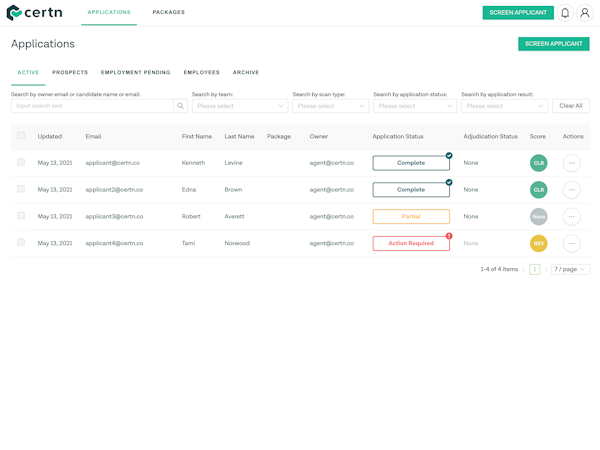 Certn’s user interface