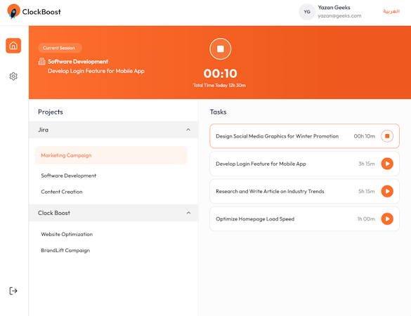The task management functionality within ClockBoost allows administrators to create, assign, and monitor task progression for remote workers with precision. The system facilitates strategic task delegation by matching appropriate assignments to the right team members at optimal times, thereby enhancing overall productivity and ensuring timely project completion. Daily activity monitoring capabilities provide managers with real-time insights into task status and completion rates, while integration with Jira creates a seamless connection to existing ticketing systems that generates alerts for active tasks and login events.