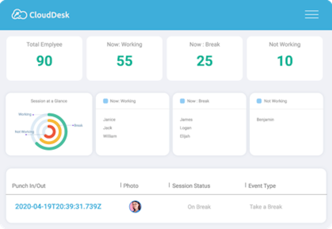CloudDesk is a web-based remote employee monitoring and analytics software that provides businesses with visibility into distributed workforce activities in real-time. With CloudDesk, businesses can increase productivity, optimize performance and improve compliance.
