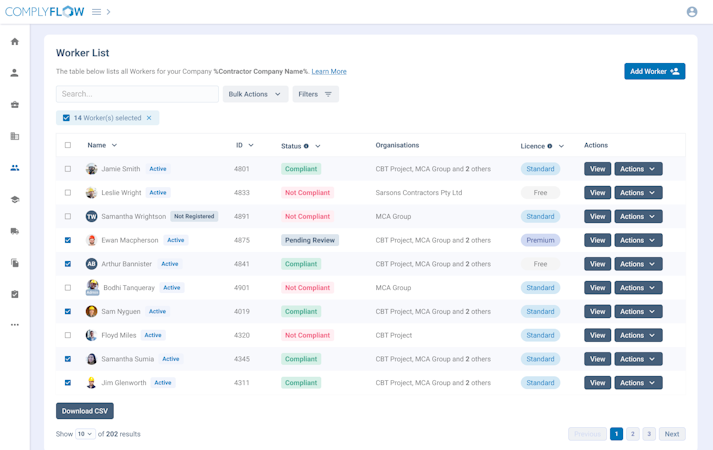 Comply Flow helps enterprises manage suppliers, workers, plant and equipment, permits, inspections, incidents, and site access within a unified platform. It enables contractors to manage the workforce internally, and clients in real-time.