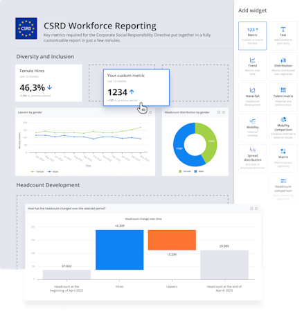 Crunchr offers hundreds of out-of-box metrics and analytics across all HR domains: recruitment, retention, diversity & inclusion, performance, rewards, spans & layers, internal mobility, engagement, succession, and much more.