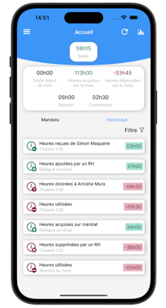 Finally, in order to ensure compliance with the company's legal framework, human resources departments also have access to DELEGATE, allowing them to analyze the hours set forth by representatives in real-time. And since the platform itself integrates regulations related to delegation hours, HR teams can also ensure that elected CSE officials do not breach any legal regulations.