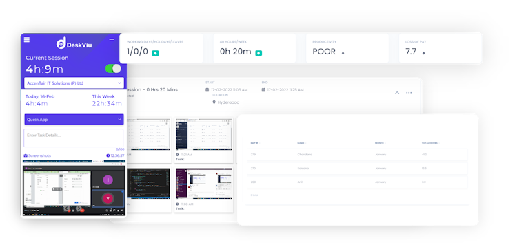 DeskViu is a cloud-based platform that offers key features under one platform like productivity monitoring, facial recognition attendance, and remote proctoring. The software helps to ease management woes by tracking the productivity and all the activities of a company’s employees. Regardless of the number of employees in a company, staff members can use DeskViu to keep things organized and make sure that they can perform to the best of their abilities by regularly monitoring & tracking the performance of each individual.