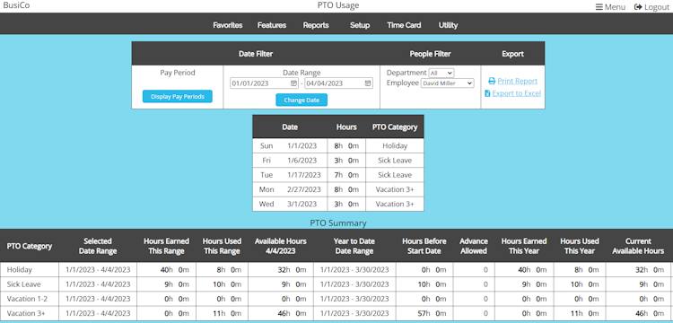 *Various features include the ability to track projects, paid time off, mileage, tardies, and more