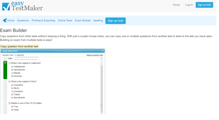 EasyTestMaker is an online test generating software that is used to create multiple question types, format exams, and publish online tests to assess student grades. The system allows administrators to create tests in multiple formats such as multiple choice, true or false, fill in the blank, and short answers as well as question pools where each question is randomized from a predetermined list.