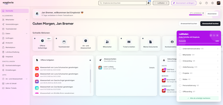 Emplovia is a comprehensive human resources management software that consolidates time tracking, personnel administration and workforce management capabilities into a unified platform. The solution serves as a centralized HR system designed to digitize and automate core human resources processes from attendance monitoring to employee lifecycle transitions. The platform targets small and medium sized enterprises as well as project based organisations requiring GDPR compliant solutions. Hosting in ISO certified data centres in Germany ensures adherence to European data protection regulations and encrypted data transmission for personnel information.