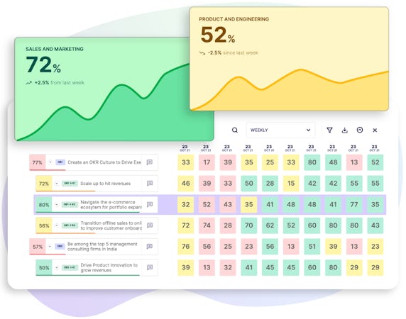 Fitbots OKRs helps you roll out OKRs with ease. You can organize your Individual, team level & org level OKRs. Visualize alignment & drive CFRs ( Conversations, Feedback & Recognitions) all in a single window.