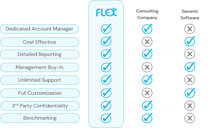 Flex Surveys is a fully managed employee survey software designed to help organizations improve employee engagement and satisfaction through net promoter score (NPS), benchmarking, and engagement assessments. It lets users customize various aspects of their reporting based on specific requirements of the organization.