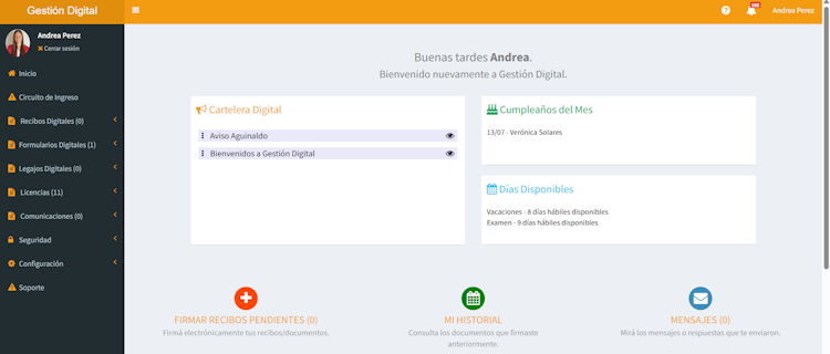 Gestión Digital’s user interface