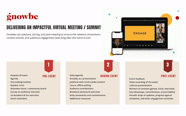 Gnowbe is an award-winning training and engagement platform with rapid authoring, all in a microlearning format. A curated course library and marketplace are also available along with a selection of templates to enable turnkey course and content creation. Use cases: corporate training and communications (including sales enablement, product training, employee engagement, upskilling/reskilling, compliance, safety, and wellness training), education and training.