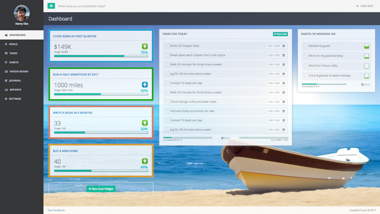 GoalsOnTrack is a web-based goal setting software designed to help users set, prioritize and pursue SMART goals, and stay on track at all times. The software offers a range of features to let users plan action steps and follow them through, including action plans, recurring tasks, habit trackers, and more.