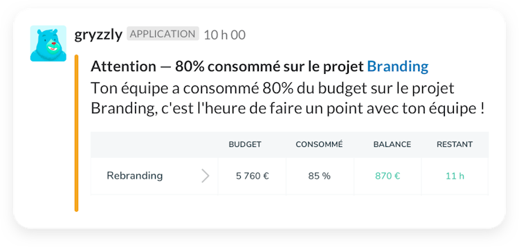 Gryzzly is a French-language Slackbot that tracks employee productivity, hours worked, projects, and client budgets. It includes a live dashboard, automated alerts, data collection features, and many integration capabilities. With this solution, managers can monitor employee activity, simplify time-recording processes, and identify opportunities for profitability.
