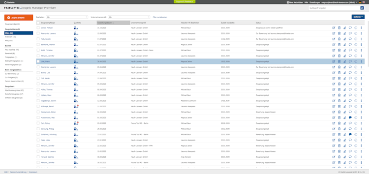 Haufe Zeugnis Manager overview