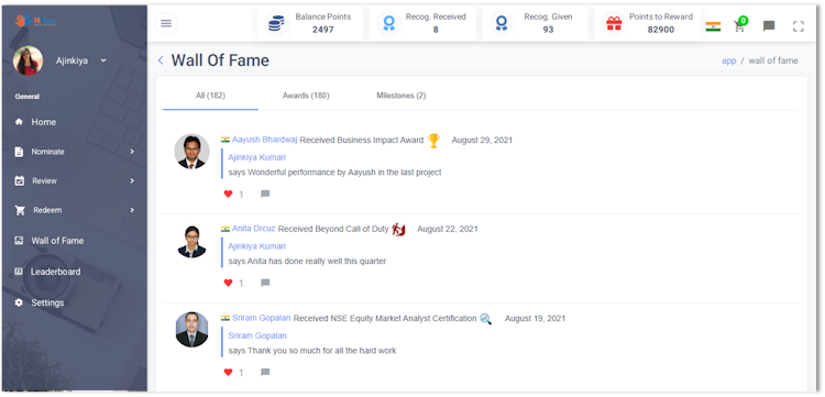 I appreciate how the platform blends simplicity with functionality — it’s easy for employees and managers to nominate, recognize, and redeem without any learning curve.