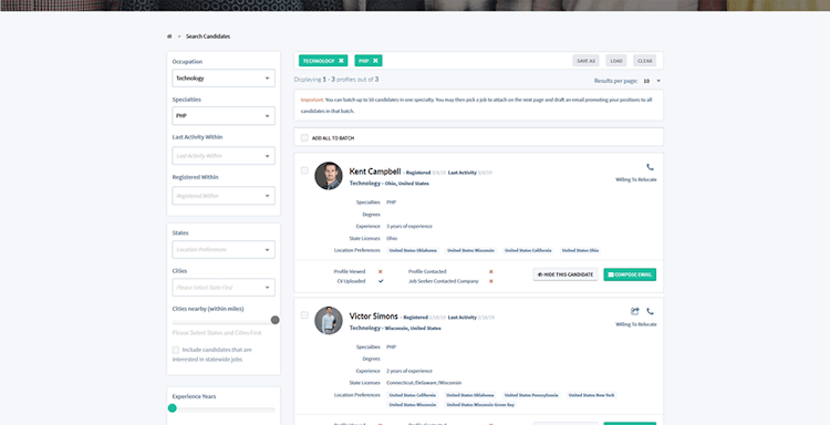 HiringOpps’s user interface