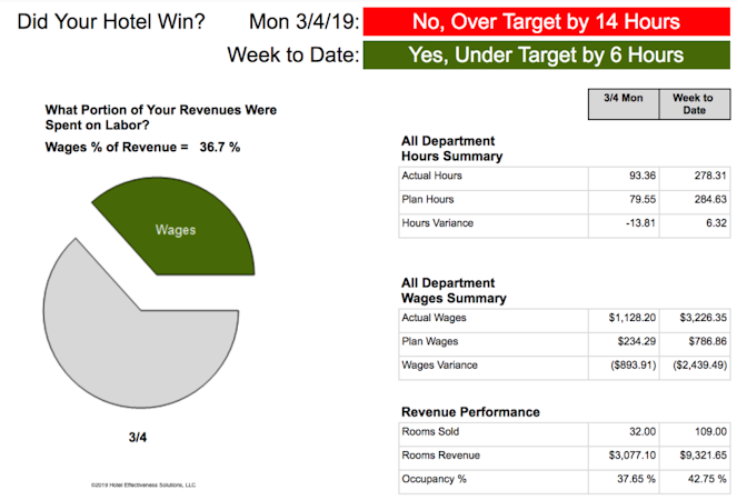 Hotel Effectiveness supports effective monitoring and reporting on all areas that require attention such as daily staffing needs, occupancy rates, payroll costs, usage of third party contractors, and issue reporting. The platform also offers goal setting, and strategic planning, and enhances corporate visibility by giving all stakeholders access to a single place for viewing important performance metrics and tracking strategic objectives. Hotel Effectiveness provides benchmarking against internal and external standards for a better understanding of how a user's hotel aligns with the overall industry and their historic performance.