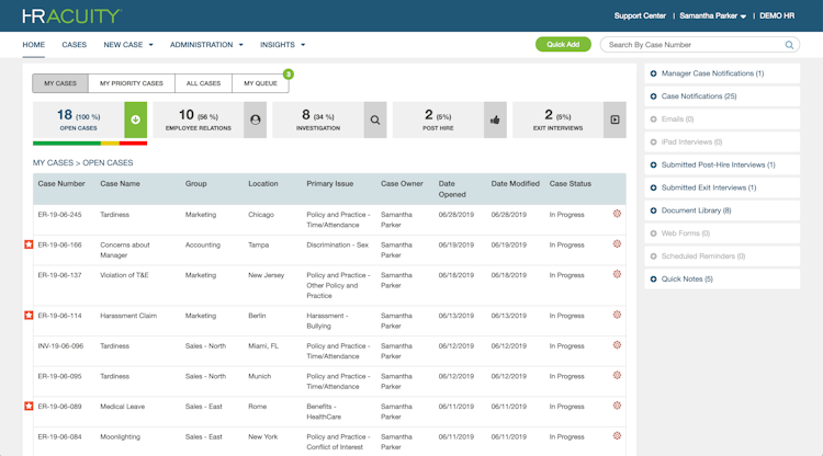 Enterprise-Grade Security and Seamless Integrations: HR Acuity integrates with HRIS systems, ticketing platforms, CRMs and single sign-on solutions, providing a complete real-time view of employee and business data without compromising security. Ticketing integrations as well as email-forwarding capabilities keep all issues centralized. Historical cases and attachments can be migrated seamlessly via integrations or CSV imports and SSO provides secure, streamlined access.