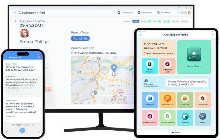 CloudApper hrPad transforms ordinary iPads, tablets, and devices into intelligent employee self-service kiosks powered by advanced AI Agents. This innovative solution redefines HR service delivery by automating workforce management tasks, empowering frontline employees, and reducing the burden on HR teams.