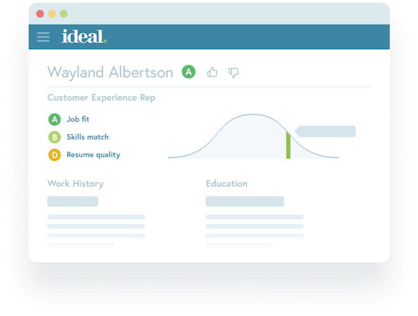 Ideal is an intelligent system that integrates with existing HR and application tracking software to assist with high-volume talent searching and recruitment. The platform uses AI (artificial intelligence) to analyze rich candidate information such as resumes, chatbot conversations, assessments, performance data, and more, to score and qualify candidates.