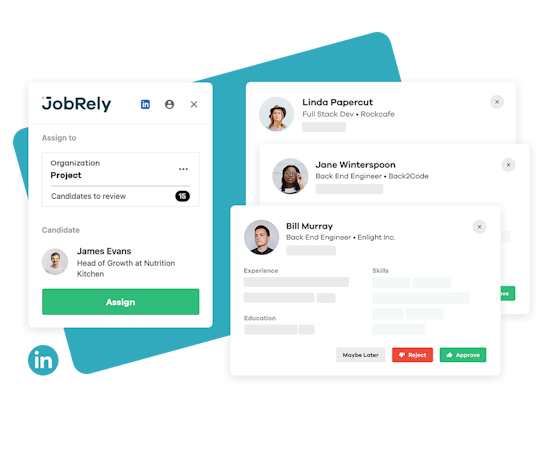 We are also proud to have a very easy and safe LinkedIn connectivity mechanism. Contrary to many other LinkedIn automation tools, we don't request our users to provide their LinkedIn credentials. All you have to do is use our Chrome extension while logged into your LinkedIn and connect to jobRely in one click.