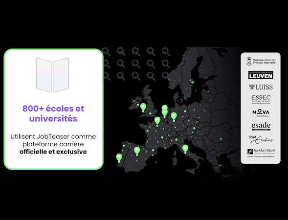 JobTeaser, the European leader in recruiting young talent, connects 750 schools and universities, 4 million young people and 80,000 companies. With Jobteaser, save time by multiplying all your job offers in one click directly to our network of partner schools for which we are their official career management tool. And take advantage of our dedicated content creation team and our various products that meet the codes of Gen Z and will allow you to stand out from the crowd to attract qualified profiles.