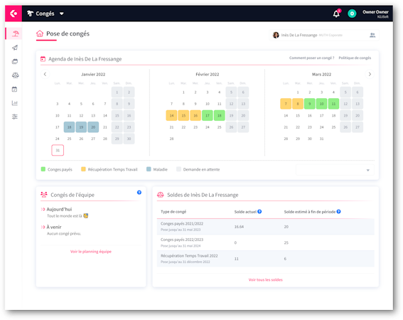 - Automatic calculation of leave balance and meal vouchers according to leave and expense reports
