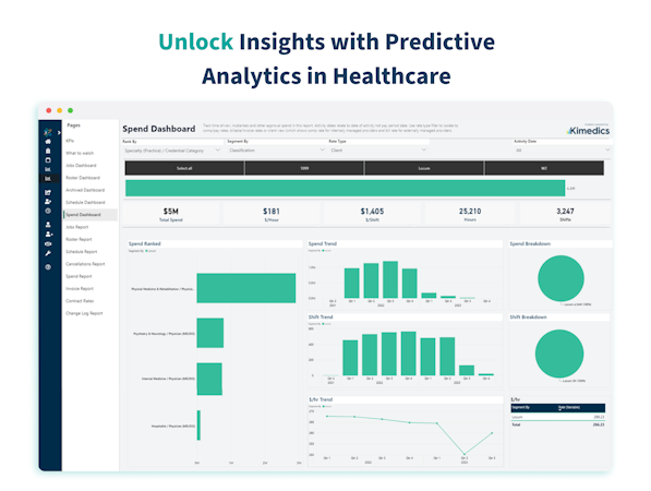 Kimedics is a cloud-based workforce relationship management platform designed for healthcare organizations to optimize their extended workforce of physicians and other clinical staff. Key features include roster management, job and open shift dispatching to clinicians and vendors, schedule management, timekeeping, payroll integration, credentials tracking, task workflows, notifications, analytics dashboards, and mobile access. The platform centralizes scheduling, time tracking, compliance, and insights in one hub. Kimedics aims to improve workforce efficiency, care continuity, cost controls, and patient outcomes via data-driven staff coordination.