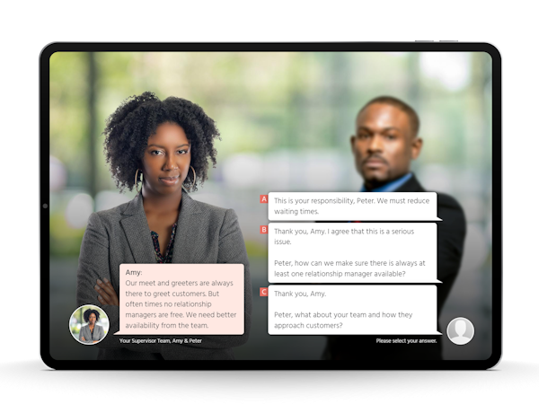 The scenarios dynamically adapt to the learners’ decisions, making each learning path unique and personalized.
