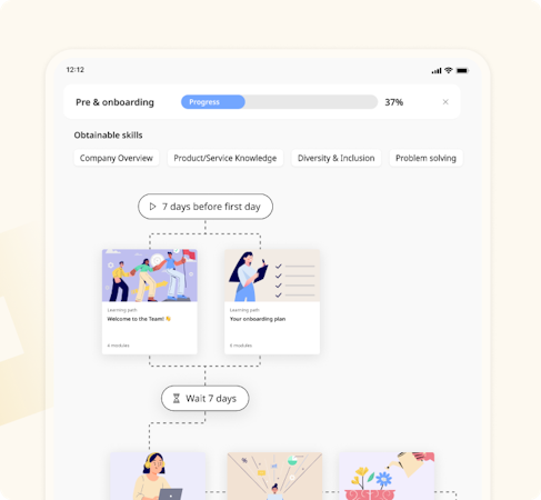 The platform delivers structured preboarding and onboarding workflows with role-based learning paths that operate consistently across sites, shifts, and languages to accelerate new-hire readiness. Mobile-optimized, bite-sized content supports frontline training in the flow of work to promote consistent operational execution. Compliance management automates assignment distribution, reminder notifications, certification tracking, and documentation to maintain audit readiness with reduced administrative burden. Leadership development features incorporate skills tracking, coaching frameworks, and structured growth pathways to enhance retention. AI-driven content creation and learning automation tools foster a learning culture through automated material generation and workflow orchestration. Skills management and knowledge management capabilities provide real-time competency tracking and just-in-time information access to increase worker confidence and minimize errors. Gamification elements, interactive assessments, and reward mechanisms advance engagement and support retention. Analytics and reporting deliver in-depth insights into learner progress, performance metrics, and engagement patterns. The Learningstore component offers pre-built courses covering leadership, safety, and operational procedures while customizable content options and branding settings align training materials with company identity and requirements. Multi-language support broadens reach to global teams.