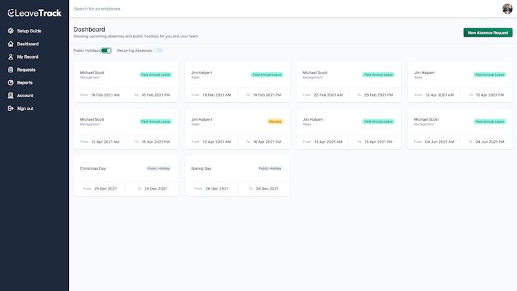Leave requests - requests for leave show you straight away who else within the department is on holiday so you can make quick decisions to approve or reject leave requests