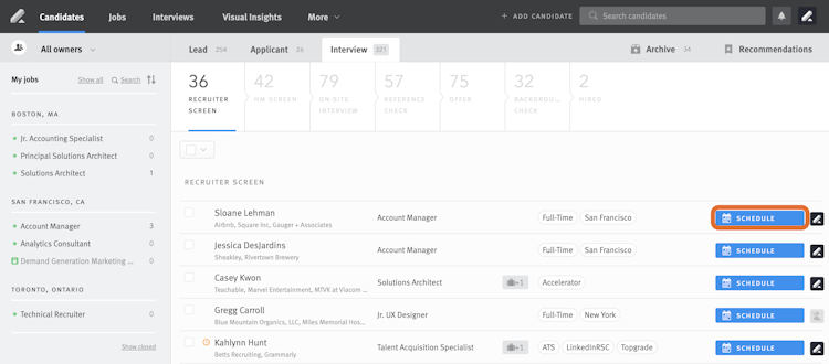 • Schedule and re-schedule interviews with ease through Lever’s calendar sync, drag&drop workflow, and automatic reminders.