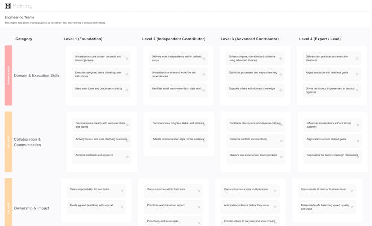 Matricsy is employee engagement software that approaches workforce motivation through competency-based career development and structured performance clarity. It is designed for organizations seeking to improve employee retention and engagement by establishing transparent growth pathways, measurable skill progression, and standardized performance expectations. The platform addresses engagement as a structural challenge by connecting employee development with clearly defined competencies, role requirements, and career advancement criteria. The software is aimed at companies that recognize engagement issues often stem from unclear expectations, inconsistent development conversations, and limited visibility into career progression rather than cultural or compensation factors.