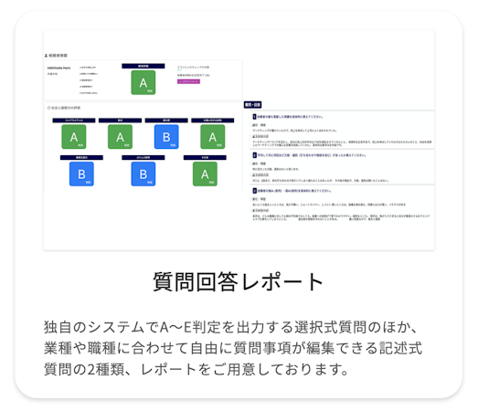 MiKiWaMe Point is a reference check service that enables corporations to conduct recruitment activities. By entering job seekers’ information on the web, MiKiWaMe Point provides a reference check request solution capable of reducing human resource operations burdens and facilitating the recruitment process. The evaluation function enables businesses to visualize the analytics, focusing on the human resources inflow route and the 5-step evaluation process based on an applicant's registered data.