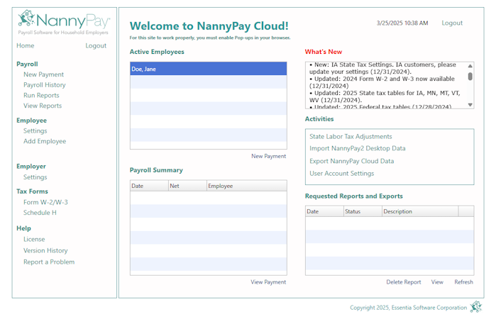 NannyPay is a cloud-based payroll software designed to simplify the payroll process for household employers. The software offers a cloud-based, browser-accessible platform that keeps users compliant with nanny tax laws. The setup wizard guides users through the initial payroll setup, ensuring a seamless onboarding experience.