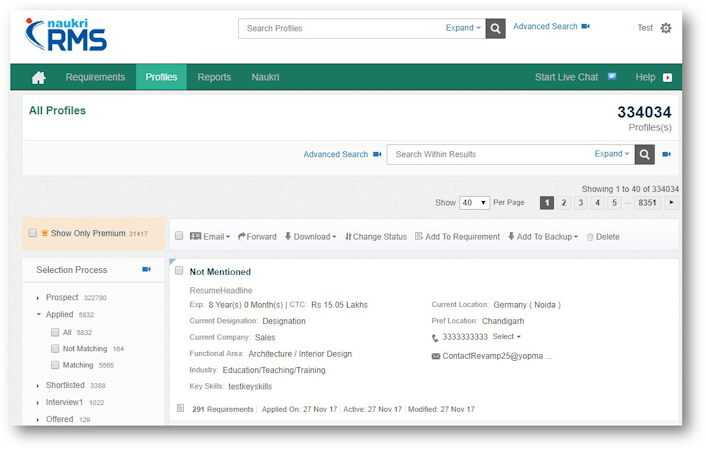 Naukri RMS’s user interface